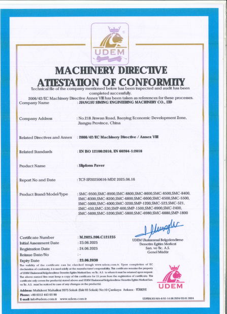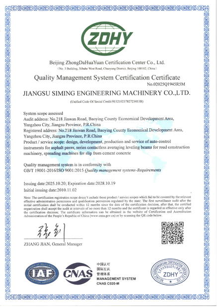 CHINA Jiangsu Siming Engineering Machinery Co., Ltd. Certificações
